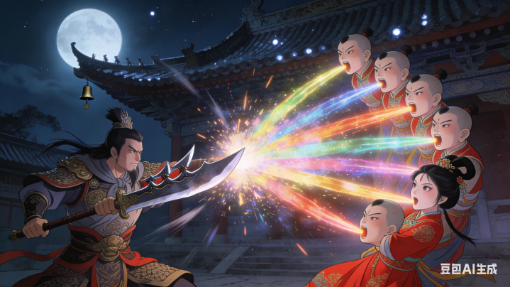 两人在月光下斗了三十回合,难分胜负,眼看天要亮了,姑娘虚晃一招,化作一道红光钻进了华山深处的金锁关。